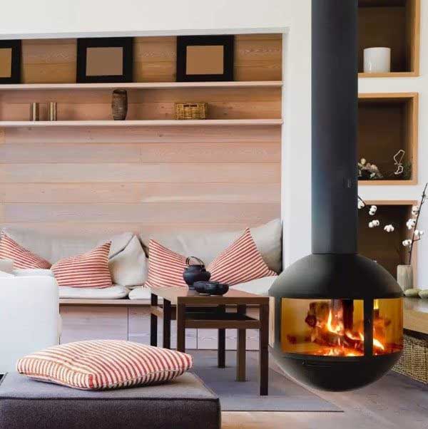شومینه معلق AGORAFOCUS 630، از پرفروش ترین مدل های شومینه معلق و به راحتی می توان آن به حالت تعلیق درآورد تا جهت آن قابل تنظیم باشد یا بر روی پایه ثابت شود. نصب آسان و نگهداری و خروجی گرمای استثنایی از مزایای این مدل هستند.این شومینه مدرن با محافظ صفحه شیشه ای طراحی شده است تا بتوان آتش را از هر طرف مشاهده کرد.